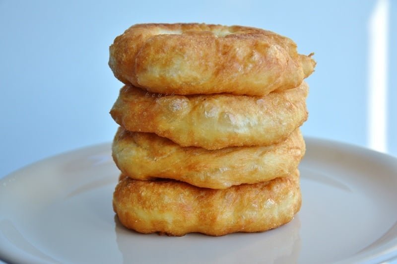 Ок за рецептата... само подчертаното коментирам... понеже не е от рецептата... което и да е тесто като го пържиш ще гълта мазнина, ако тя не е достатъчно добре загрята - 170-180 градуса. Ако нямаш термометър, пускаш парче  хляб и ако веднага започва да се пържи - това е.