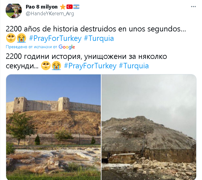 За голямо съжаление днес новините от цял свят съдържат думите: „Смърт и разруха!“, свързани с мощното земетресение в района на югоизточна Турция и северозападна Сирия!  Осъзнаваме, че мощни природни бедствия, разрушителни по своята същност и мащаби, неподлежащи на контрол от страна на хората са неизменна част от живота, но това не прави болката и тъгата за жертвите по-лека! Земетресението от днешния 06 февруари 2023 год. до този момент е отнело, застрашило и продължава да застрашава здравето и живота на стотици и хиляди хората в граничния район между Турция и Сирия! Искрени съболезнования за семействата на загиналите, вяра, сила и кураж на оцелелите!