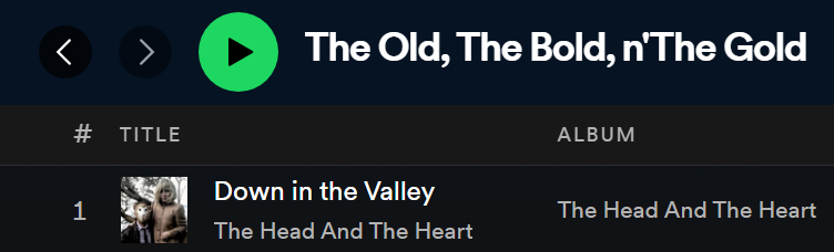 Керем е добавил „Bad Things“ от Джейс Евърет, "Down in the Valley" от The Head And The Heart  и „Home / Dirty Paws“ от Gardiner Sisters към своя плейлис The Old, The Bold, n'The Gold