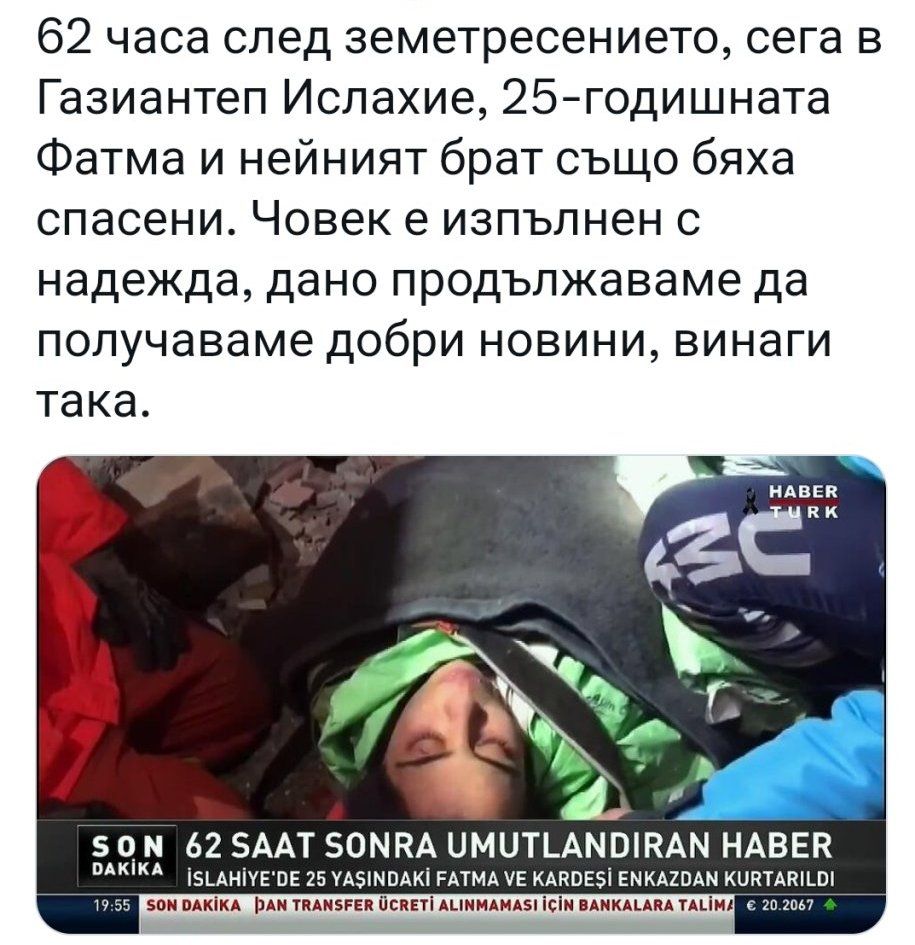 Това, което се случва в Турция и Сирия е наистина голямо бедствие и се надявам, че ще намерят още живи хора под тези руини.