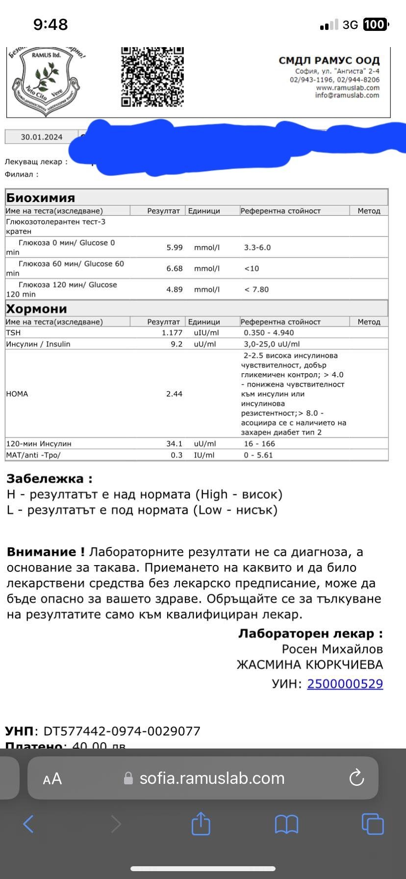 инсулина изследвахте ли, аз съм със същата глюкоза, инсулина ми е 9,1 и според моят ендокринолог нямам инсулинова резистентност.