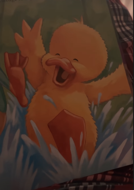 Хан и Бергюзар четат книжка за няколко патета и една жабка.