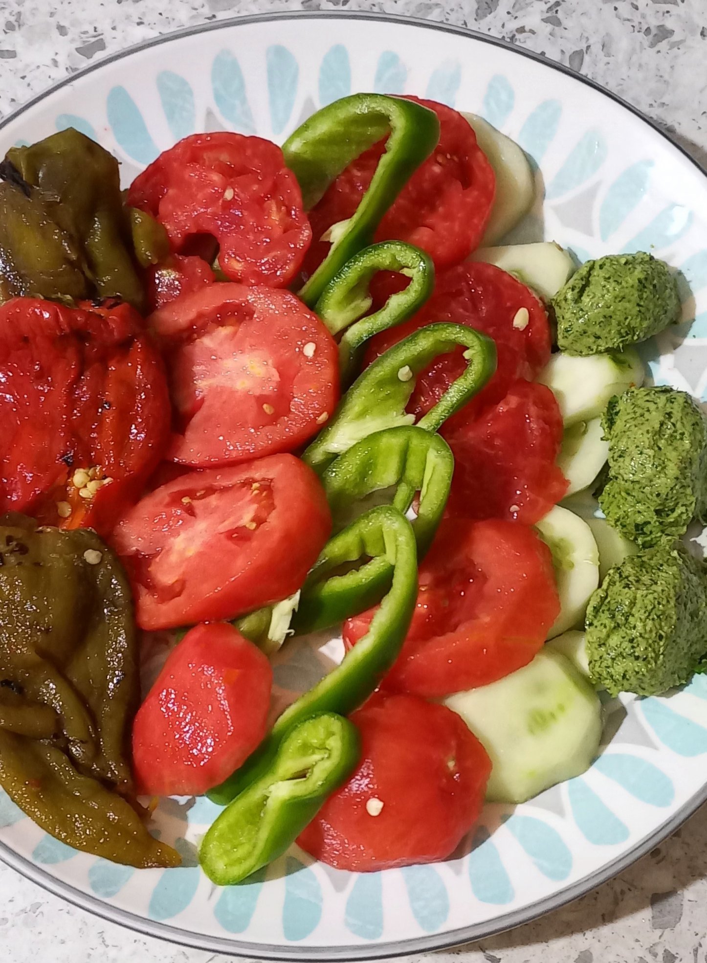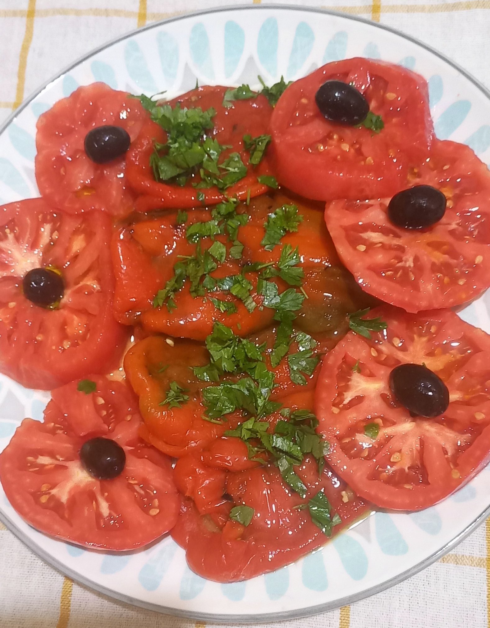 ♡Домати, печени чушки,  зехтин и сол - вкусотия