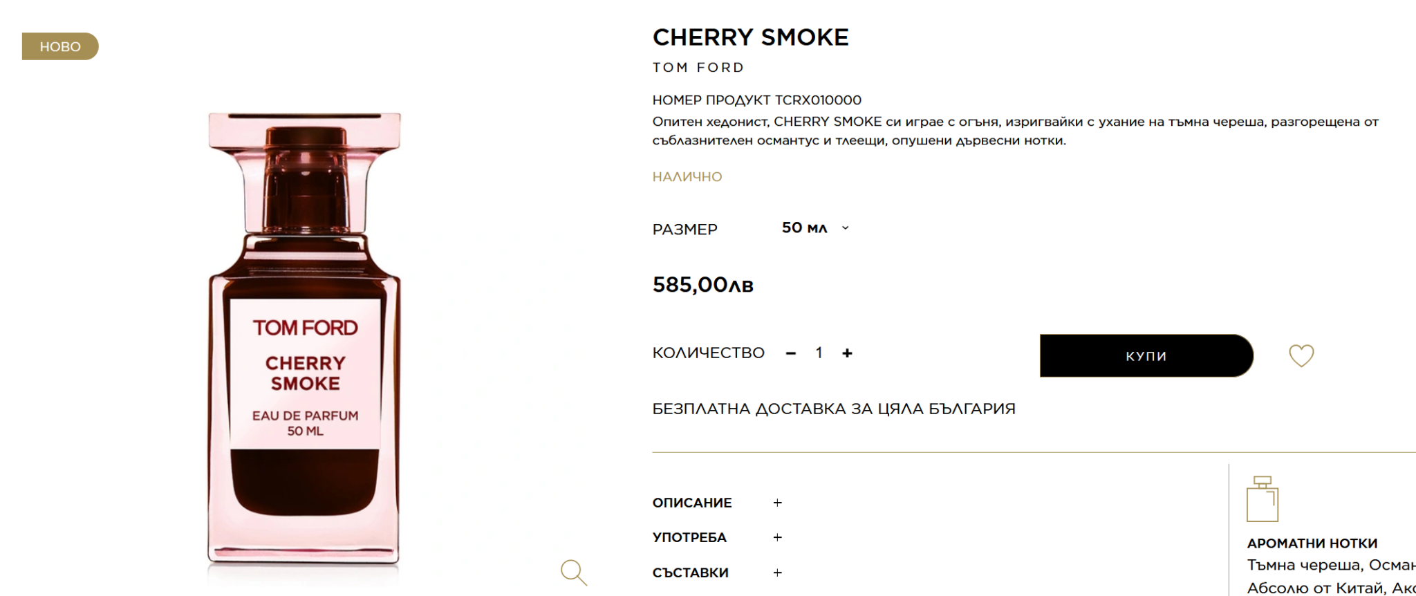 Преди 2-3 месеца го взех на цена около 65 лв. с код от parfumi-shop.net заедно с Ерос. От този сайт и двата бяха без капачка.Като гледам втората снимка, вероятно и този е без капачка.