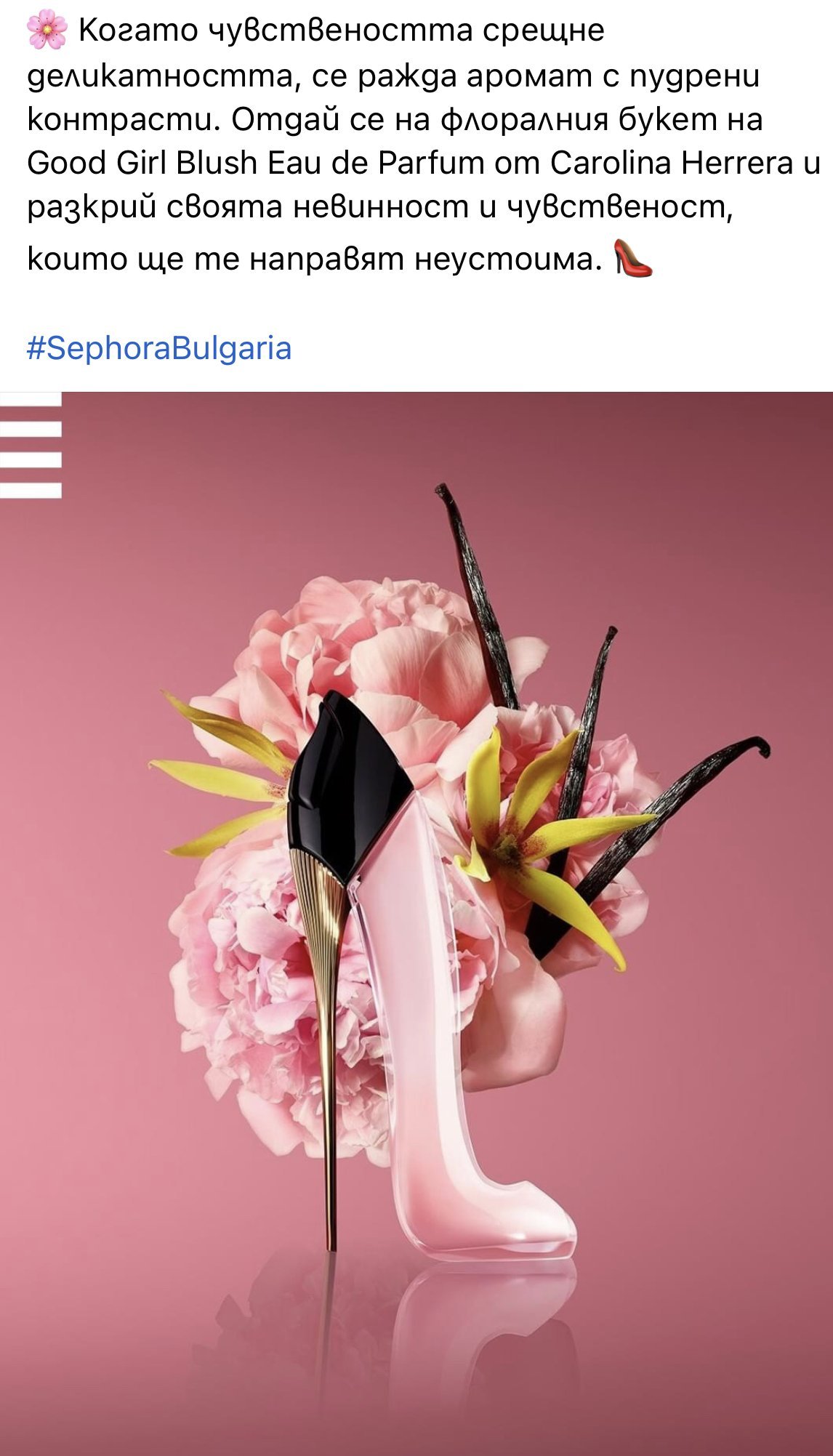 Новата обувка не я намирам за особено интересна или впечатляваща. В нея усещам роза и божур, а в драйдауна ми напомня на GG Legere. Не съм убедена че си заслужава цената и не ми се струва че ще бъде голям хит. В началото като я помирисах си казах "Още една вариация на Делина, но доста приглушена и окастрена".