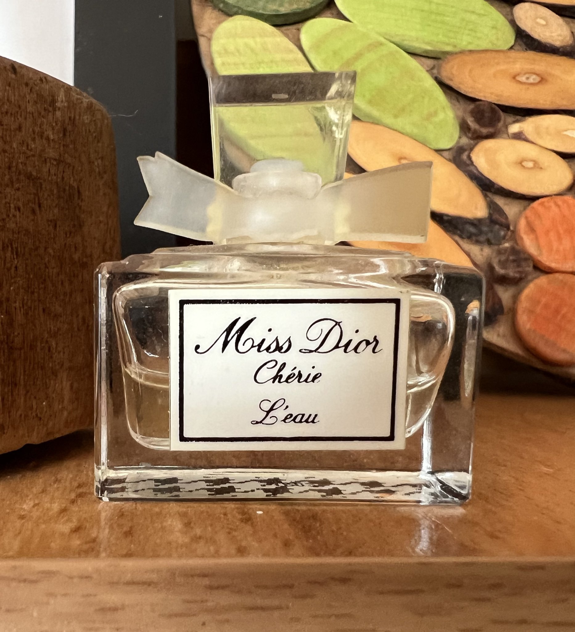 Момичета, момичета, момичета (и момчета) много искам да споделя с вас на каква находка попаднах докато разчиствах при родителите ми. Едно мини с останали 1/2мл. на Miss Dior Cherie L'Eau - https://www.fragrantica.com/perfume/Dior/Miss-Dior-Cherie-L-Eau-5722.html