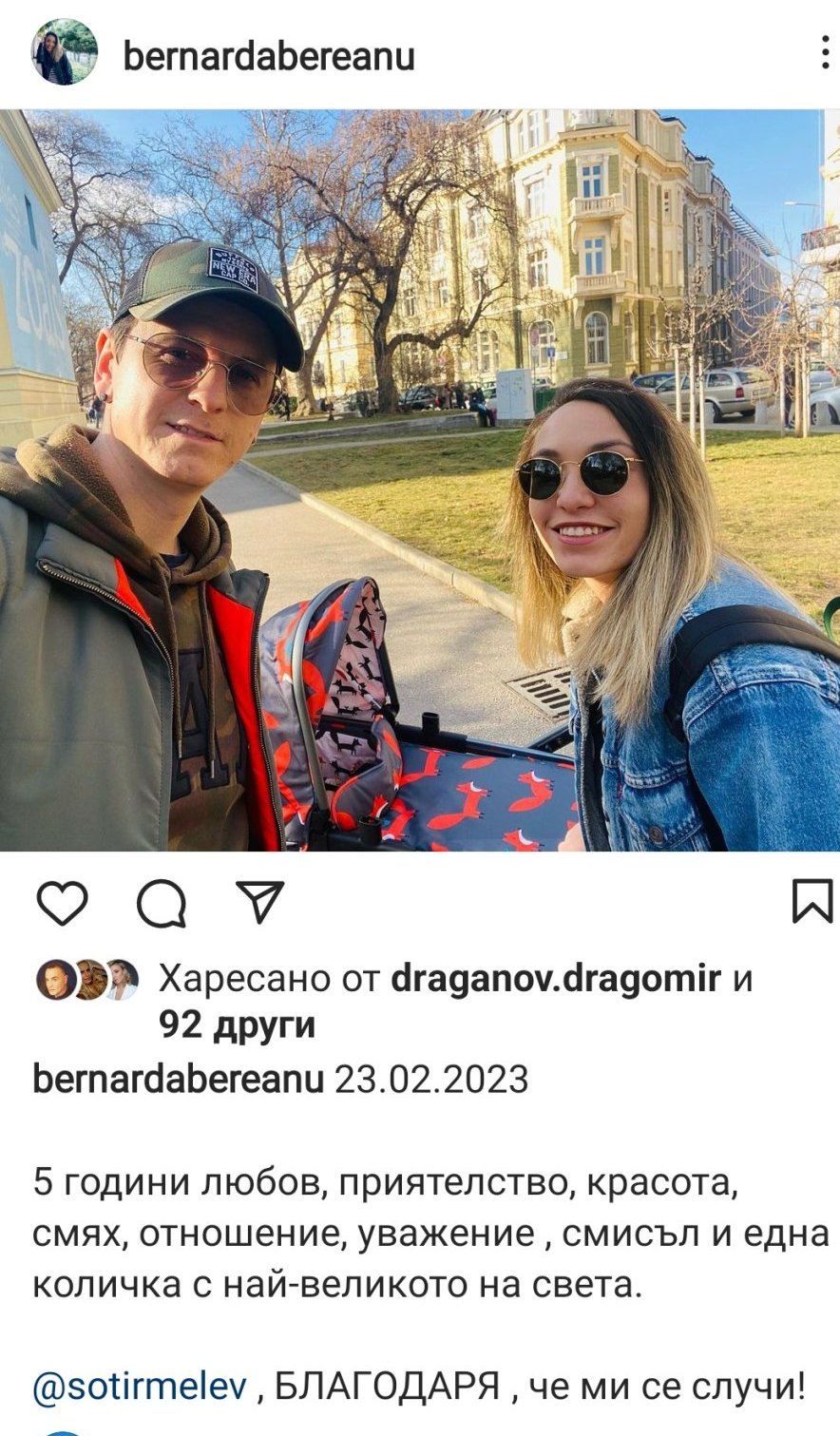 Бернарда благодари на своя партньор Сотир за 5 години щастие: