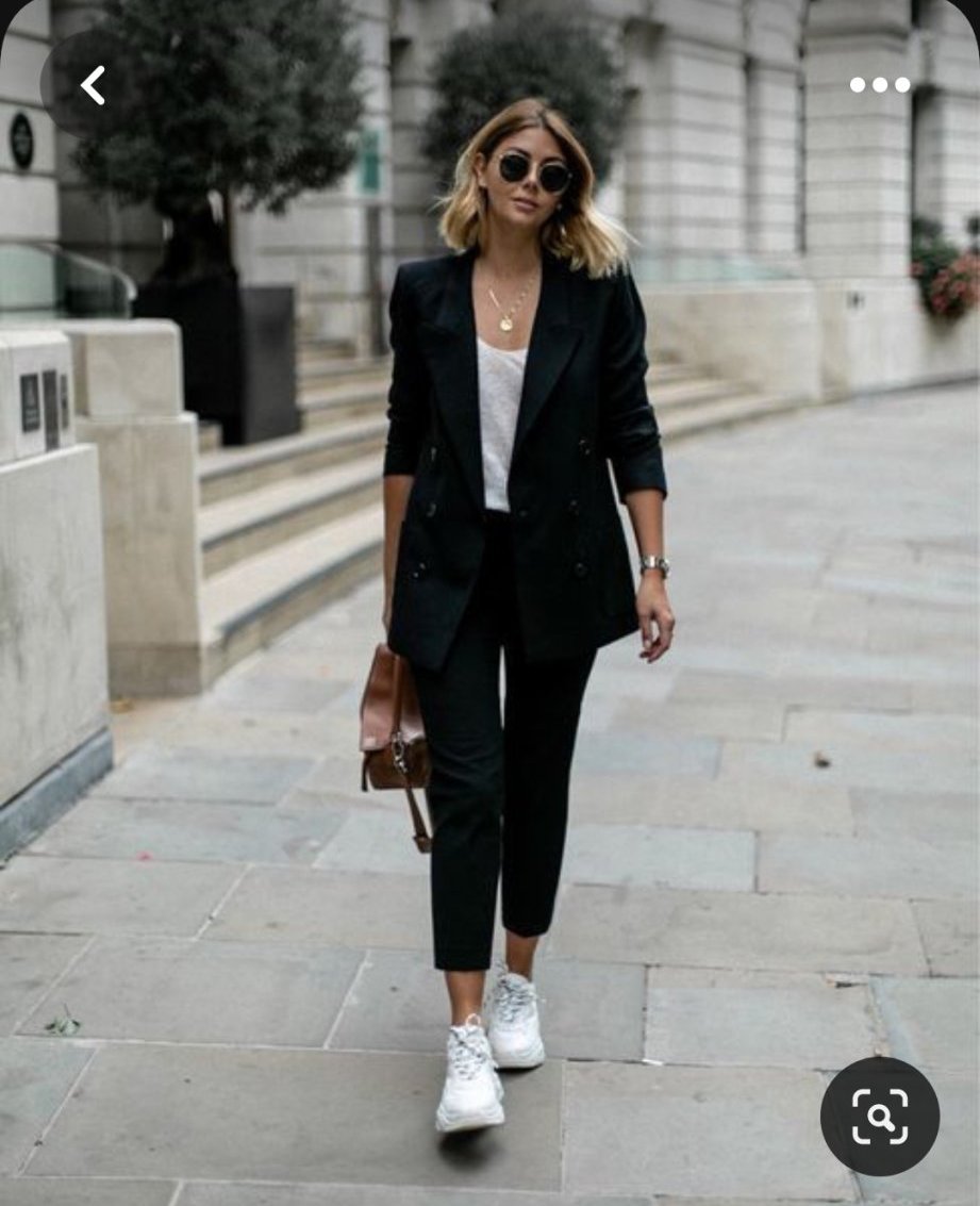 Нещо като това, само че на тази панталона и е по-различен и сакото е oversize (защо всичко живо в тоя Пинтерест е само с овърсайз сака?!?). Never overlook me бие повече на клин. Дават го около 20 градуса, кожен клин не ща, а черни дънки по крака нямам, все са Mom jeans и не ми харесва как седят с това сако. 😃