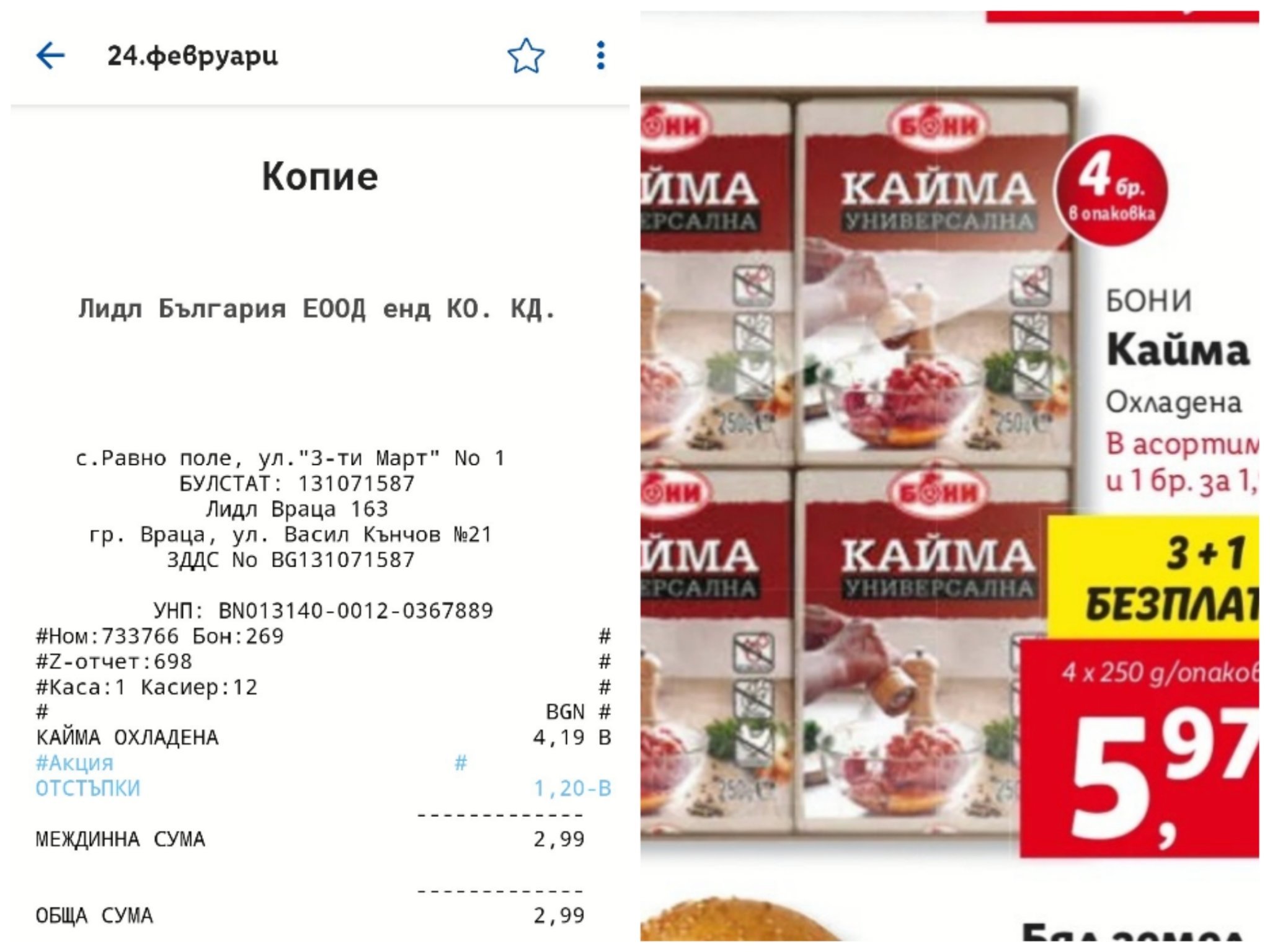 Днес във Враца каймата Бони 4бр промо от 5.97 е на 4.19 лв на табелката, но като се мине през касата и се маркира картата излиза допълнителна акция и се оказа за 2.99лв. Годността е до 28.02.2023г. Може да я има и в други градове.
