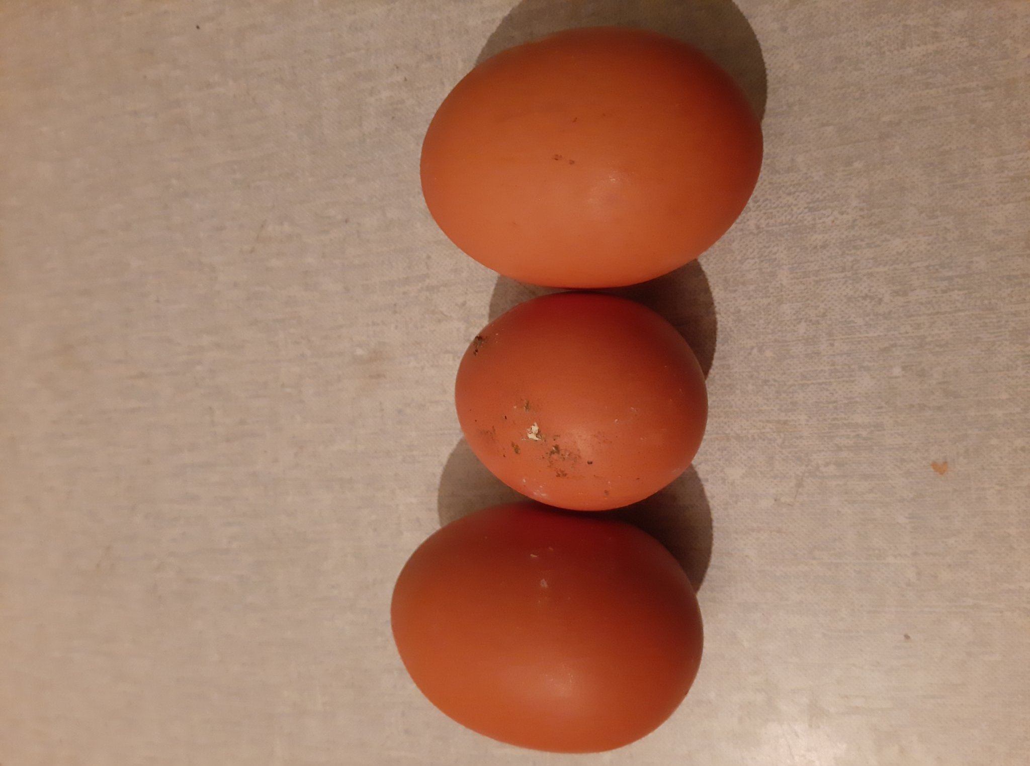 Първото от горе надолу ми изглежда най-голямо и да кажем, че там може да се крият 2 жълтъка. Ама аз и в малки съм намирала та не знам наистина как се разпознат с поглед тези яйца.