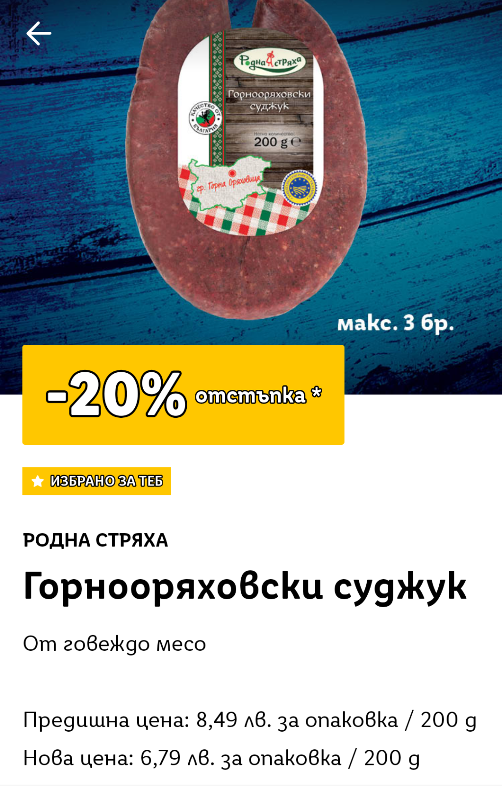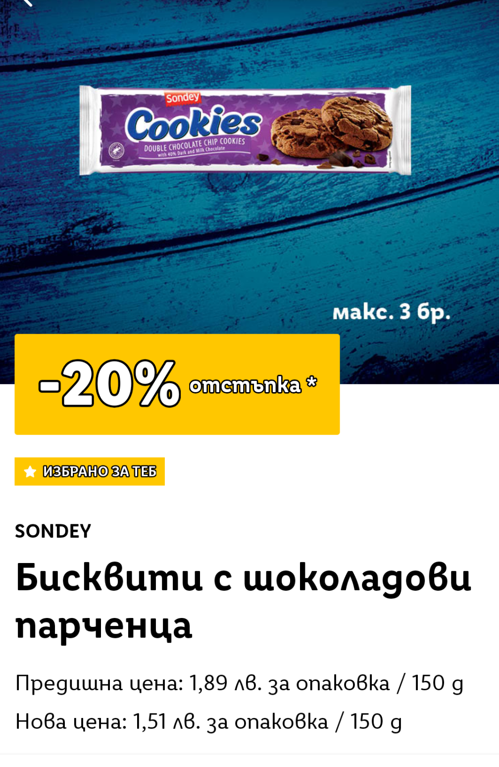 Купонът е "Избрано за теб", нямат го всички потребители на приложението, затова не е отбелязано с етикет.