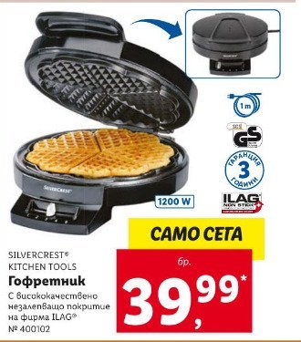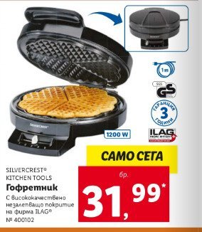 Лидъл са намалили цената на гофретника от 40 лв в хартиената брошура до 32 лв в онлайн брошурата (т.е. точно колкото струва и в Кауфланд)