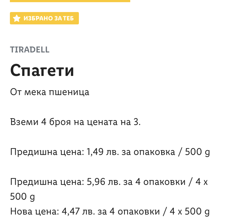 Марина, каква е цената на спагетите с намалението?