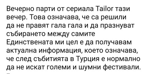 Под публикацията пише,че се надяват да покажат днес и вечерно парти!