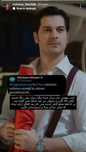 Феновете забелязаха, че новият герой на Чаатай Улусой от сериала "Шивачът / Терзи" моден дизайнер Пеями носи часовник Rolex на стойност 2 милиона турски лири. Изглежда, че този път актьорът играе много богат човек