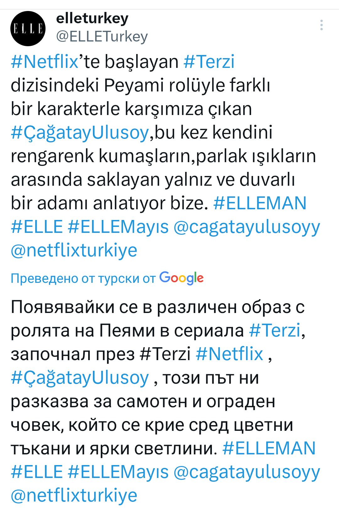 Започвайки от Netflix, Пеями в сериала Terzi, Çagatay Ulusoy се изправя лице в лице с различен герой, но този път той се крие сред блестящите цветове и блестящите светлини и само мъж на стената ни казва. #ELLEMAN #ELLE #ELLEMayıs