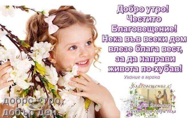Нека На Благовещение мечтите ви се превърнат в реалност. Блага вест да ви сполети и животът ви да преобрази. Да сте още по-щастливи, смирени и здрави. Вълнения и положителни емоции да ви изпълват.