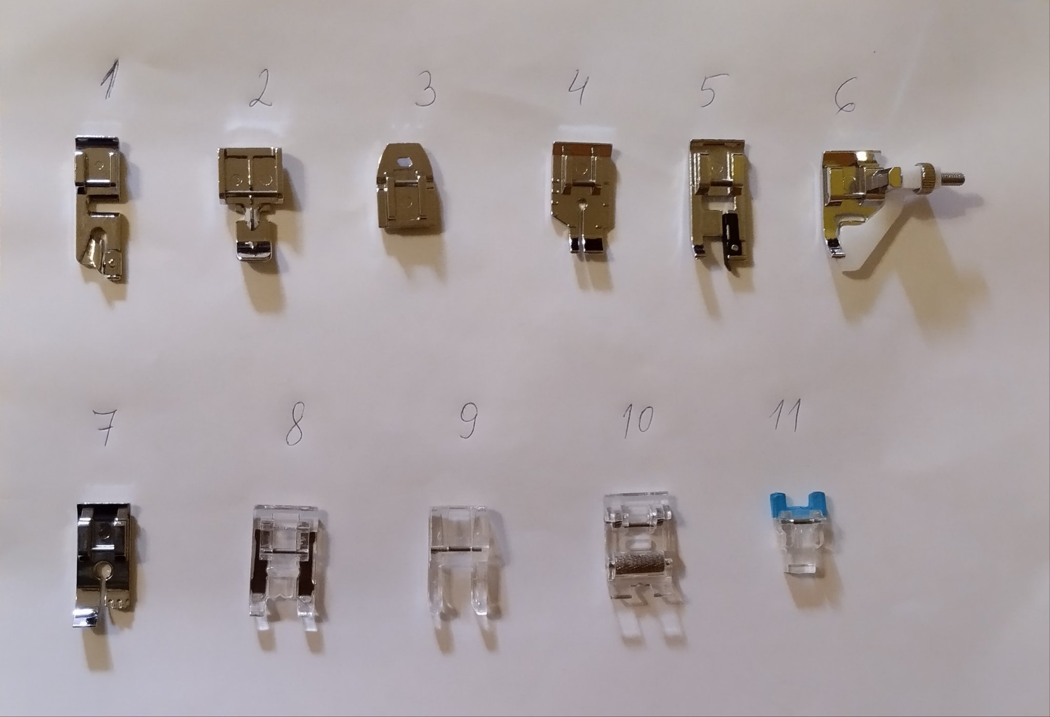 Тук извадих едни крачета, които бях поръчвала от Wish, но не съм ползвала. Някои от тях са ми познати, тъй като присъстват и в оригиналният комплект на шевната машина. Дали някое от тези крачета не е за оверлогичния шев? Като гледам крачето от линка на Електричар и тези, ми се струва, че не прилича на никое от тях, но все пак да попитам.