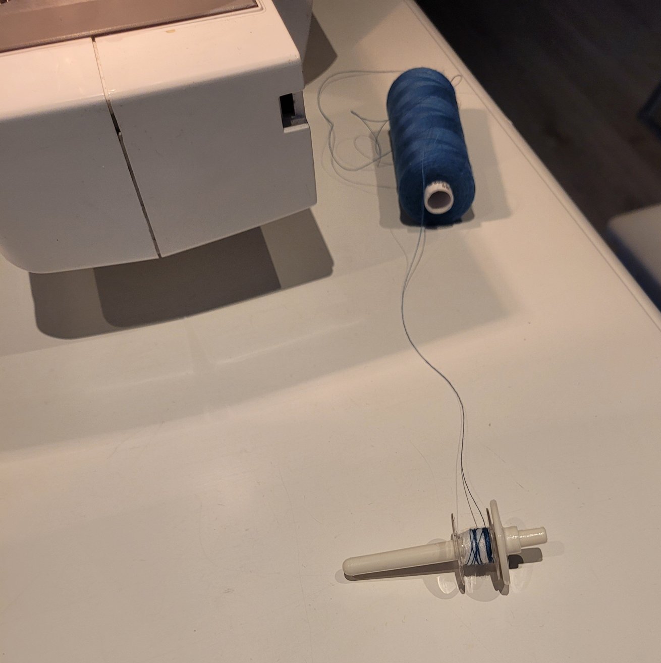 Здравейте, къде на тази машина се слага калерката за са навия конец?
