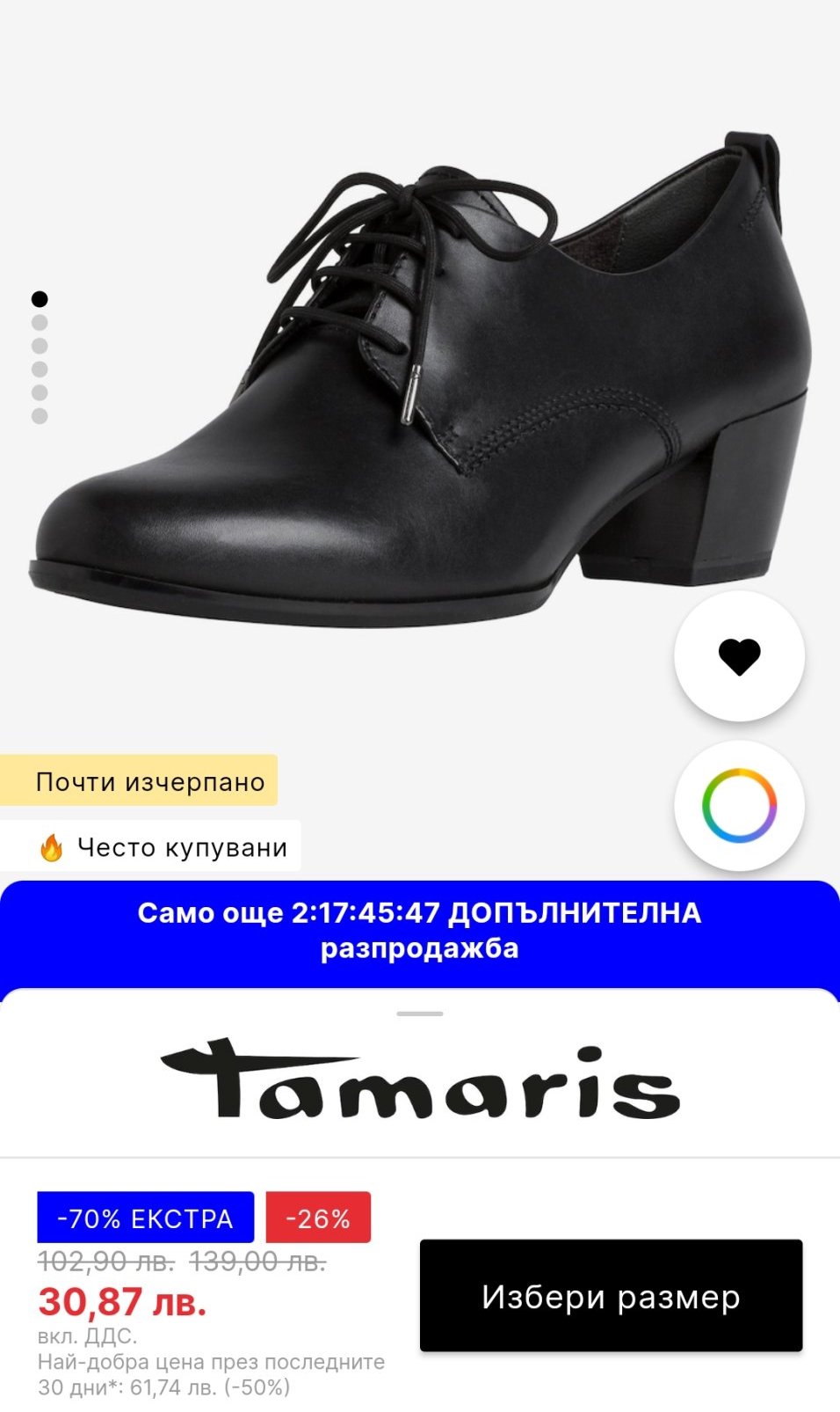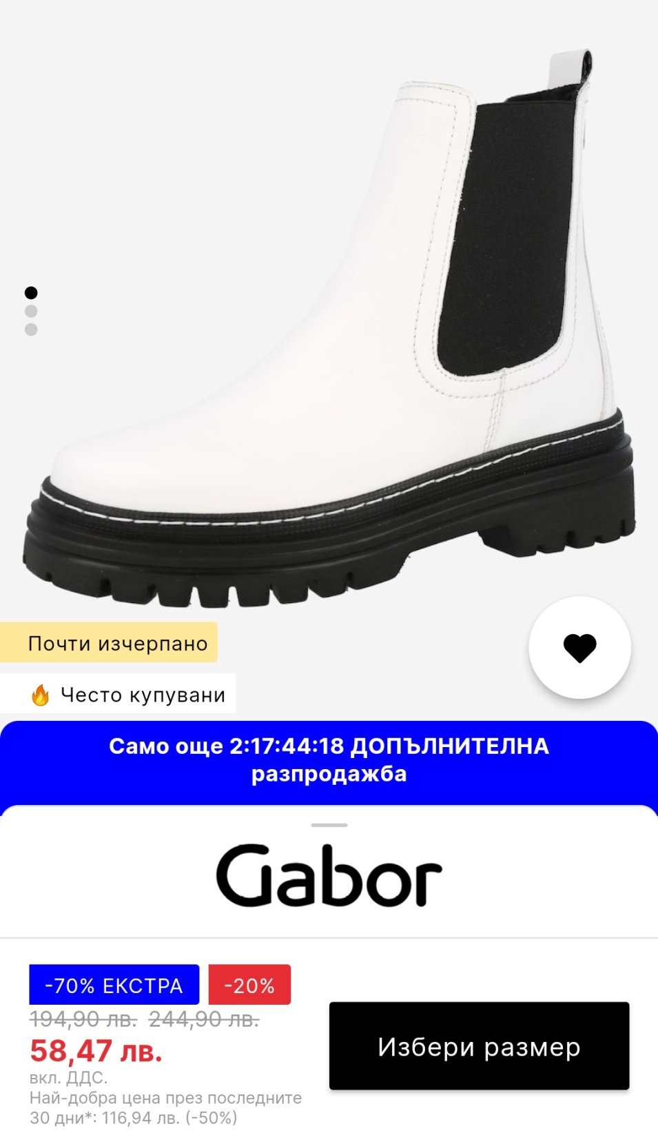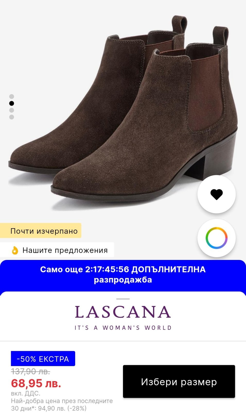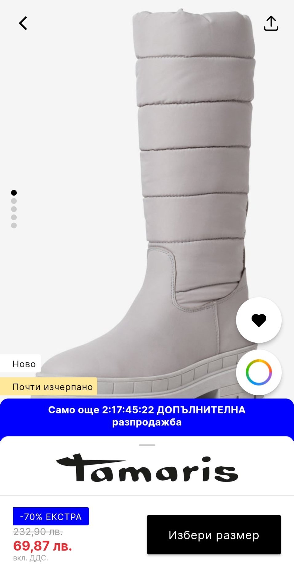 На 2 февруари напълних кошницата, попълних кода за 35% от WhatsApp и вместо да натисна бутон "Приложи кода", натиснах "Плати". Веднага анулирах поръчката, за да поръчам наново с кода, но от тогава чакам 3-те единични бройки да се появят отново. Бях правила подобен номер в Уайкики и след 1 час продуктите бяха налични. Предполагам, че в Уайкики става автоматично (поддържат го румънци), а в любимия ни немски сайт действат на ръка. Simple Smile Междувременно поръчах наличните неща с кода, като още тогава загубих 30 лв., защото след фалшивата поръчка от ботушите, които исках остана 1 чифт 39 номер и само той поскъпна. Другите номера си останаха намалени. После се появиха пак всички номера и вече няма различни цени. Всички са скъпи. Simple Smile