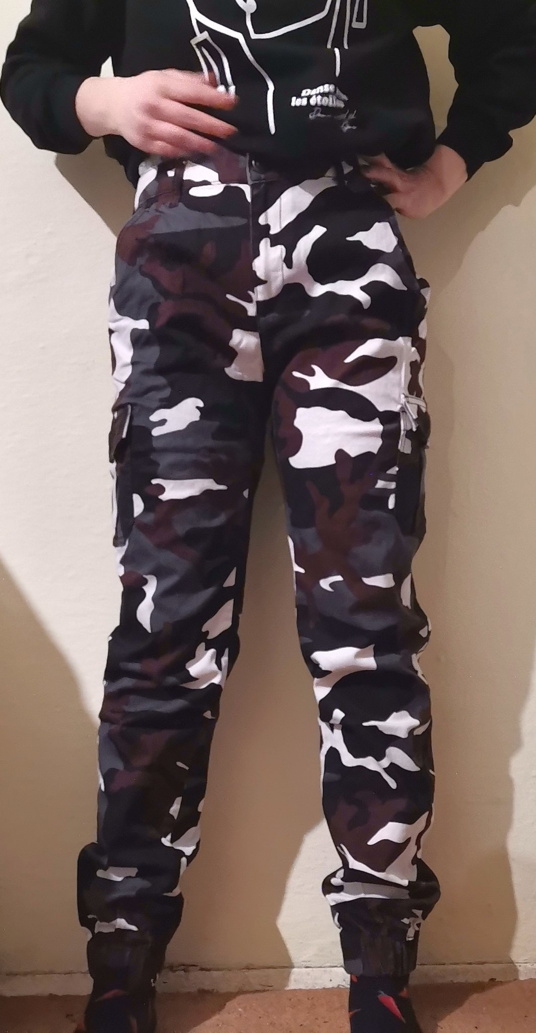 Карго панталон Urban Classics, допадна ми много, плътна материя, само леко ми е широк в талията, но с колан ще го нося.Иначе първоначално леко се шокирах как визуално тези шарки ме правят по-дебела, но важното е че ми е удобен.