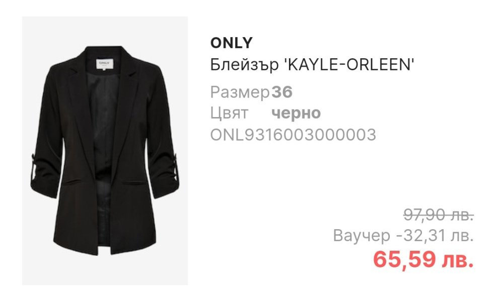Взех едно сако на Cecil, безупречно, но вече е изчерпано, дънки на Dorothy Perkins,  изненадващо добри за цената, суичер на сина ми Nike, не е лош, но там цената винаги е свръх. Ако има интерес към нещо, мога да покажа.