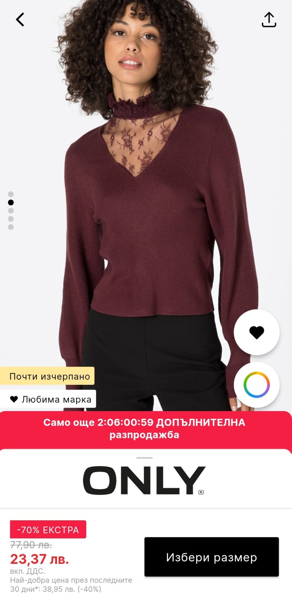 Тази блуза я имам в черно и много си я харесвам.Дебнах да я намалят и в бордо.