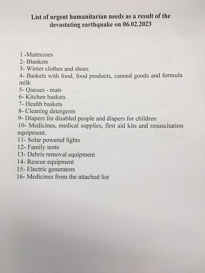 Хората там ще ги складират и при първа възможност ще ги пратят в Сирия. Под материални помощи имам предвид зимни дрехи, одеяла, стари палатки, завивки, обувки, консерви, бисквити, ако е възможно лекарства, медикаменти. Ще си позволя да прикача списъците с медикаменти и материали, които са пратени на сирийската диаспора по света, който каквото може да помогне.