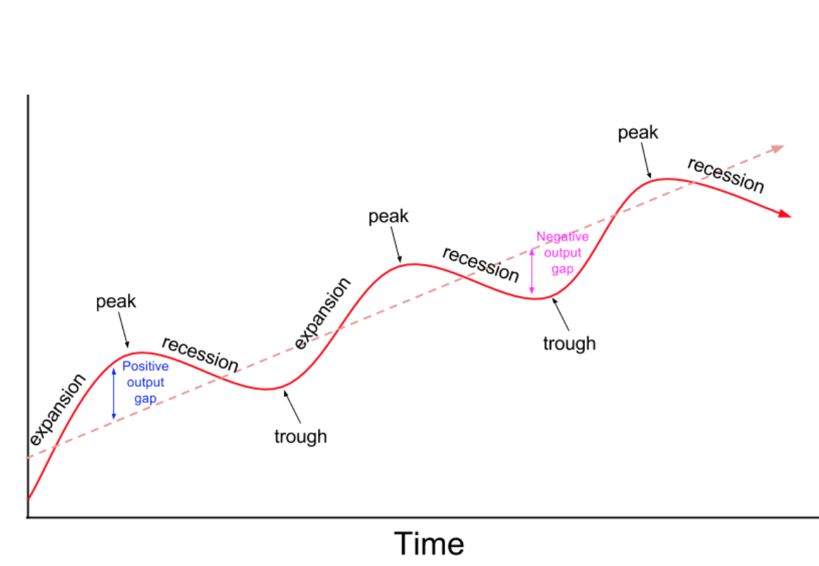 В един идеален илюстративен случай цените се движат като йо-йо в краткосрочен план, а в дългосрочен може да растат или спадат, но този дългосрочен тренд се състои от множество малки пикове и спадове. На картинката долу се вижда какво имам предвид - дългосрочен ръст, състоящ се от малки локални флуктуации (картинката е за друго, но пасва на примера ми). Мечтата на активния играч е да продава на всеки пик и после пак да купува на всяко дъно - купува на 100, продава на 105, купува пак на 102, продава на 107, купува пак на 104, продава на 109... И така парите му се умножават експоненциално. Да, ама има риск да не се уцели и да се поучи обратен ефект. Статистиката твърди, че малцина активни играчи надбягват пазара. Пасивните пък купуват и не пипат и разчитат на дългосрочния тренд. ДОСЕГА винаги са успявали в достатъчно дълъг срок. Техният риск е, че ако не могат да чакат и имат лош късмет може да загубят доста. Например в периода 2020-2022 година загуби от по 30% не бяха нещо невиждано. И ако избегнем голяма война, световен катаклизъм или нещо подобно нещата най-вероятно ще си продължат така. Кой коя стратегия избира си е негова работа. Акулите имат вътрешна (или поне изпреварваща) информация, аналитични щабове и прочее и разчитат на активно управление. Те могат даже и да манипулират пазара, макар да е незаконно. Дребните риби много често стават храна за акулите.