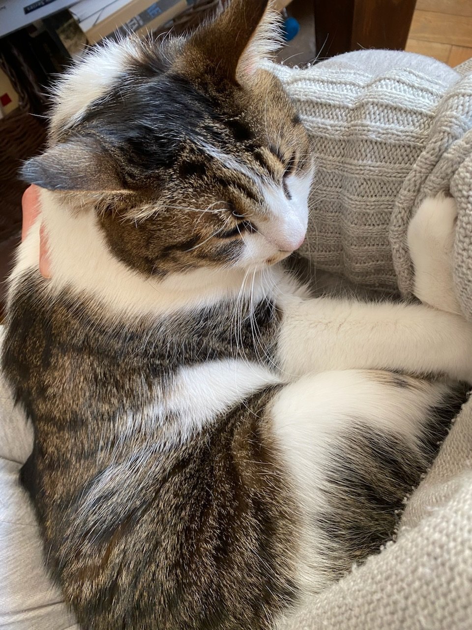 Мойто пуфче 🐈 Бъди за емоционална подкрепа 💜 тези дни кака му е малко болна и няма сили да го заведе на преглед, но и там предложиха да му погледнат зъбките, и също да натрошавам гранулките, за да не ги поглъща цели. Та пак му взех вирбак гранулки... но и намаза за десерт да оближе опаковката от маслото🧈
