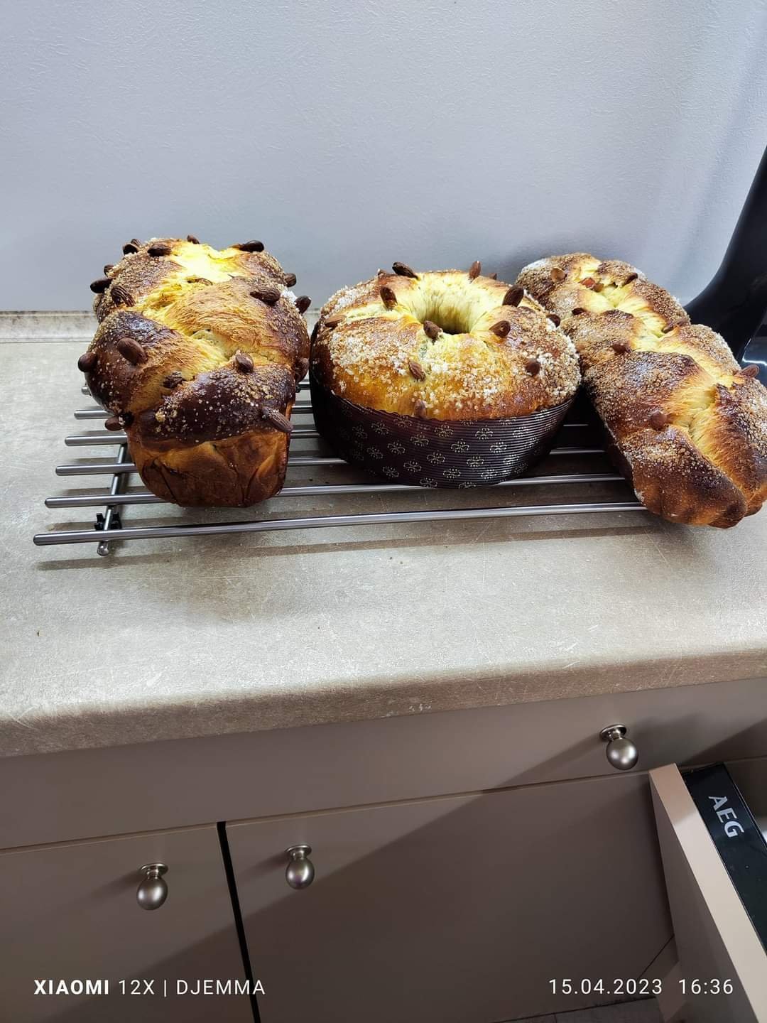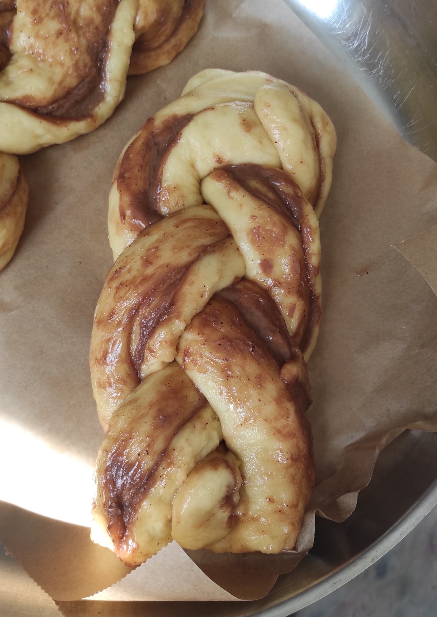 Та, ето ги моите пашкулченца ала Джемма, след сплитането. Отивам да си припомня как беше с печенето.
