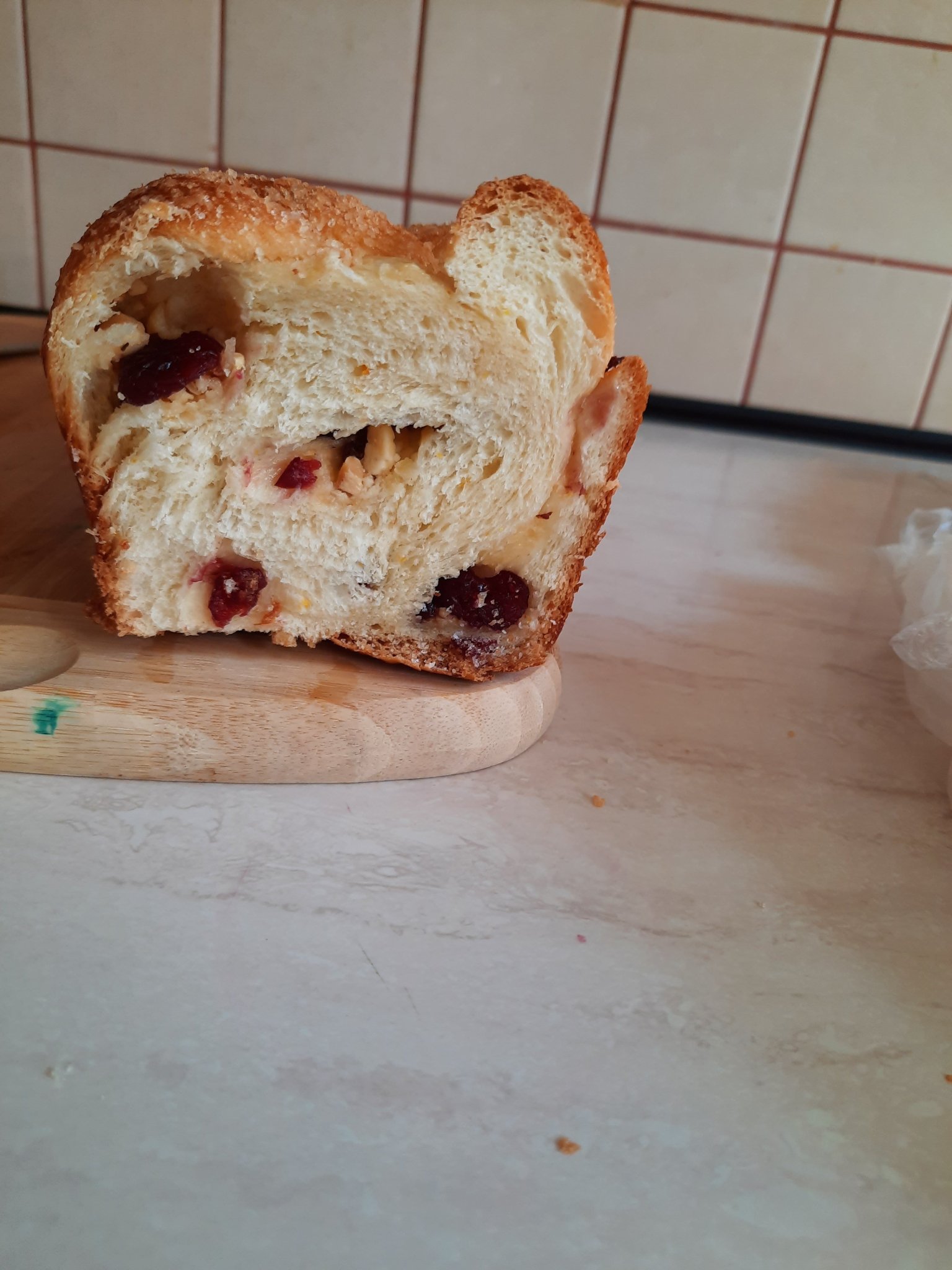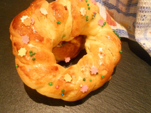 Последният козунак. Правих го по рецептата на Морена, но тази в която има и кисело мляко. Разпукнаха ми се фитилите, но не се отказвам от  печенето в плоска тава.