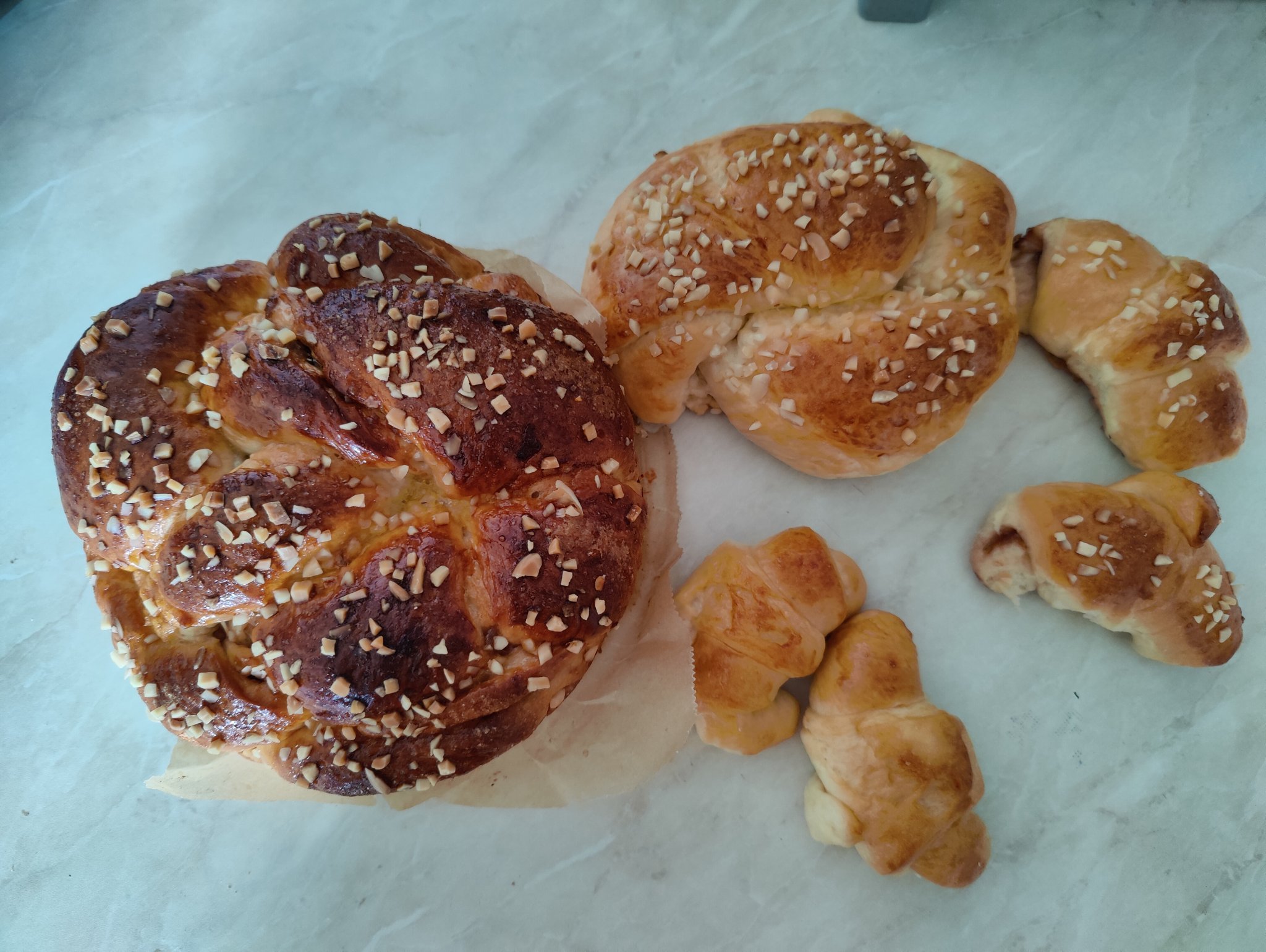 Разчупих го преди напълно да изстине, имаше конци , то и единия малкия козунак докато беше топъл го ометох набързо.