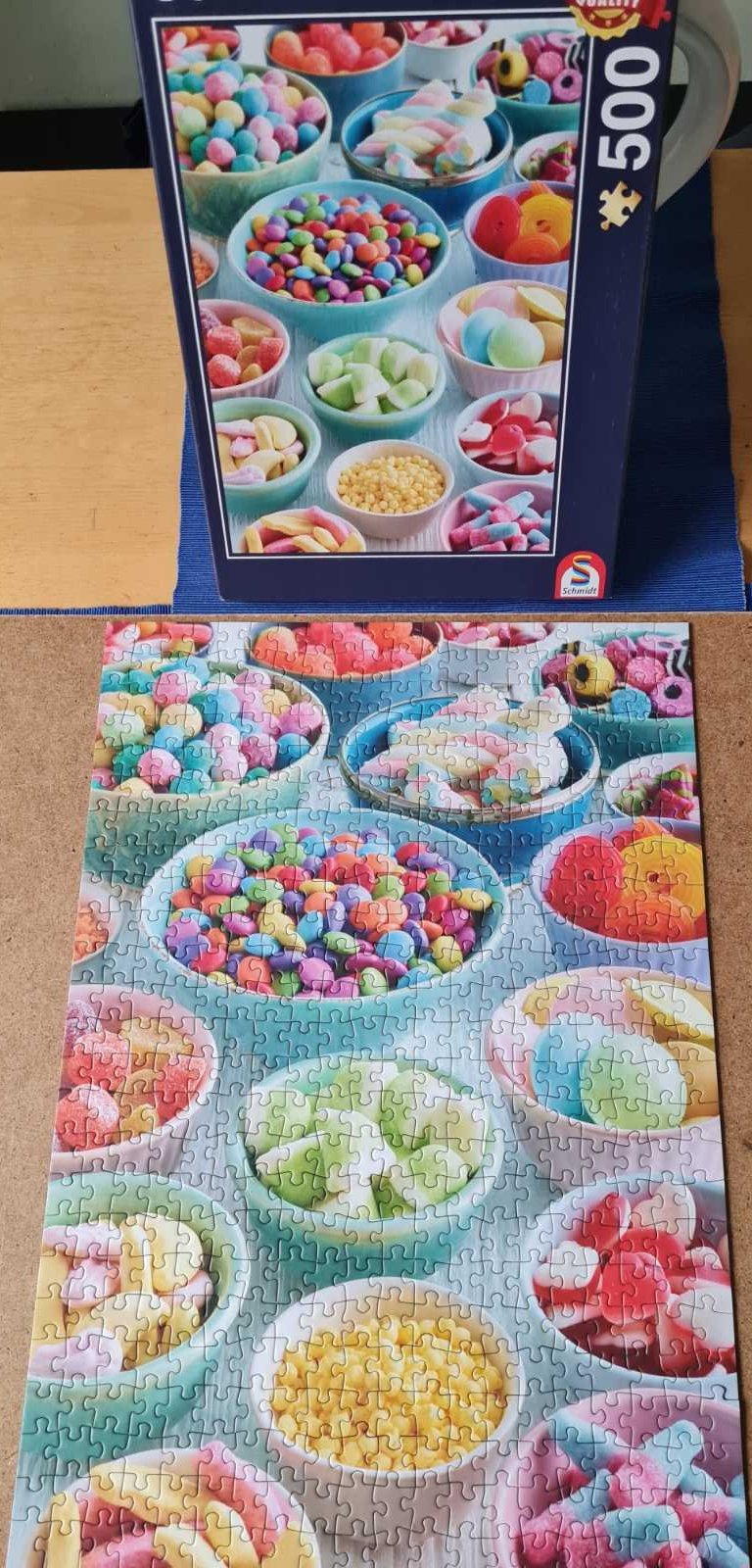 "Аз съм много зарадвана от Art puzzle - първо редих този с пишещата машина, който обаче е някаква стара колекция и ми изпадна във ФБ групите. Хареса ми, макар да не беше Уау. Веднага поръчах два от Озон, та в петък пристигнаха и почнах първия. Разликата в качеството направо ме тресна по главата - дебели парченца, много по-малко миризма, няма недоизрязани, изображението е прилично и спокойно успявам да се ориентирам кое какво е; кофтито е, че картинката на кутията не изпълва целия капак. Сглобката е добра, макар и да не е Schmidt. Обаче за цената си определено си заслужава" (май 2021)