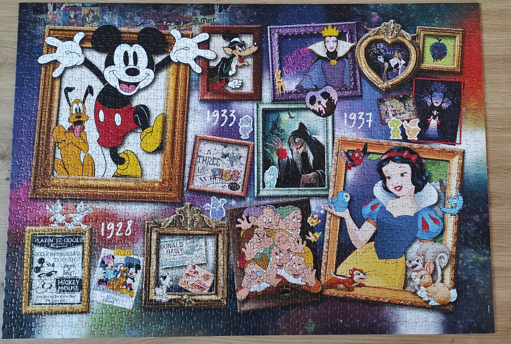 От много време на бях нареждала пъзели (имам един 4000 части пейзаж в Пловдив, който сигурно ще остане недовършен), но като разгледах някои галерии ми се прииска да започна отново да редя. Купих пъзел 9000 части с Дисни герои. Реди се лесно и приятно, защото е разделен на 6 сегмента по 1500 части. За един уикенд завършихме два от шестте сегмента.