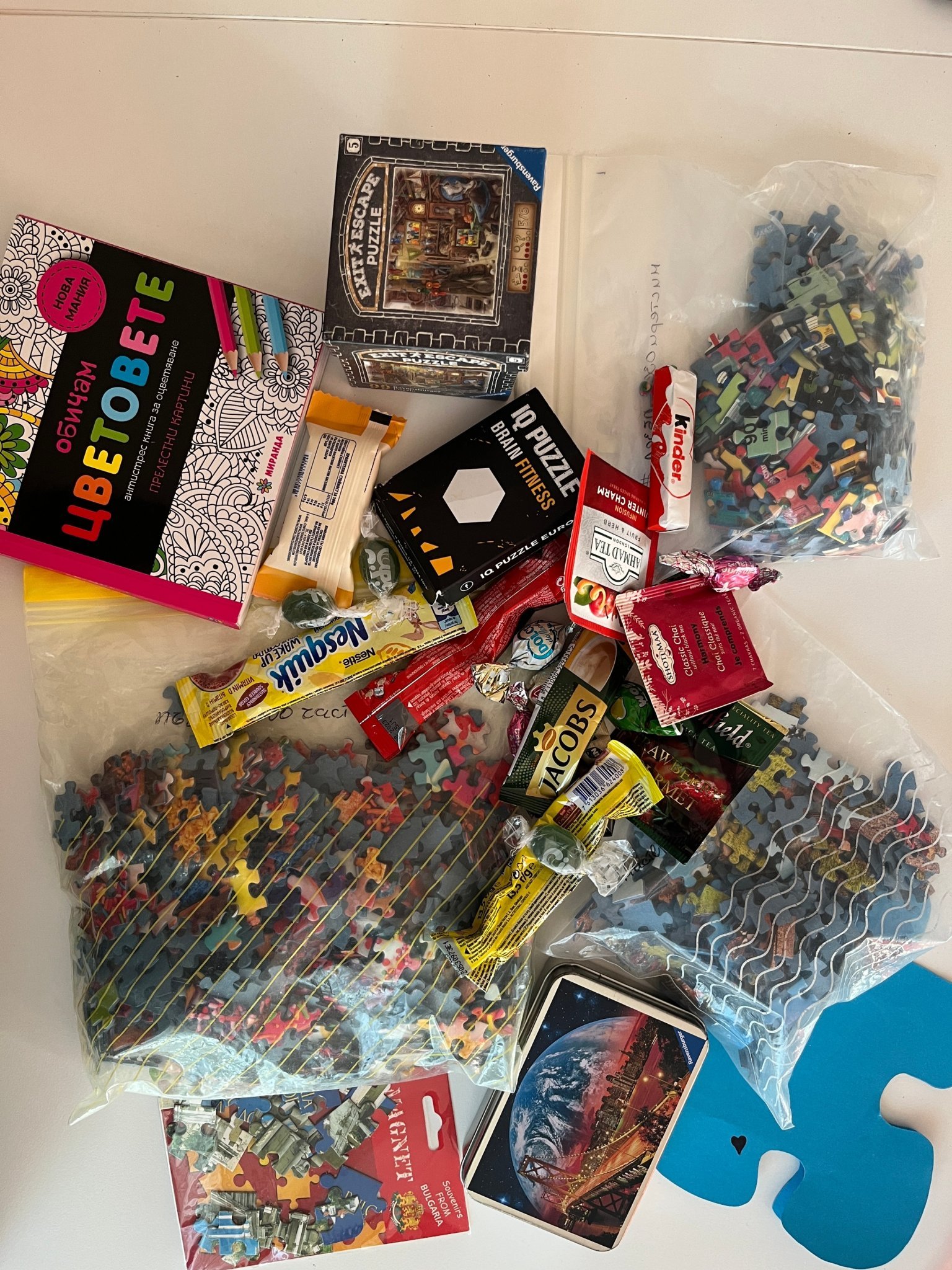 Другите неща бяха такива, които съм намерила вкъщи Joy Равенсбургера със супер миниатюрните части и IQ пъзелчето, което е голяма главоблъсканица.