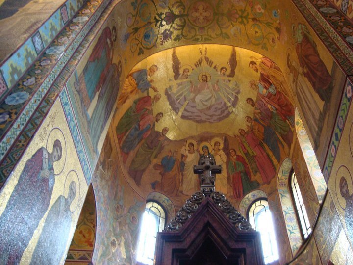 И отвътре (от пода до тавана всичко е мозайка с много кехлибар; унищожена цялата църква през ВСВ и взъстановена)