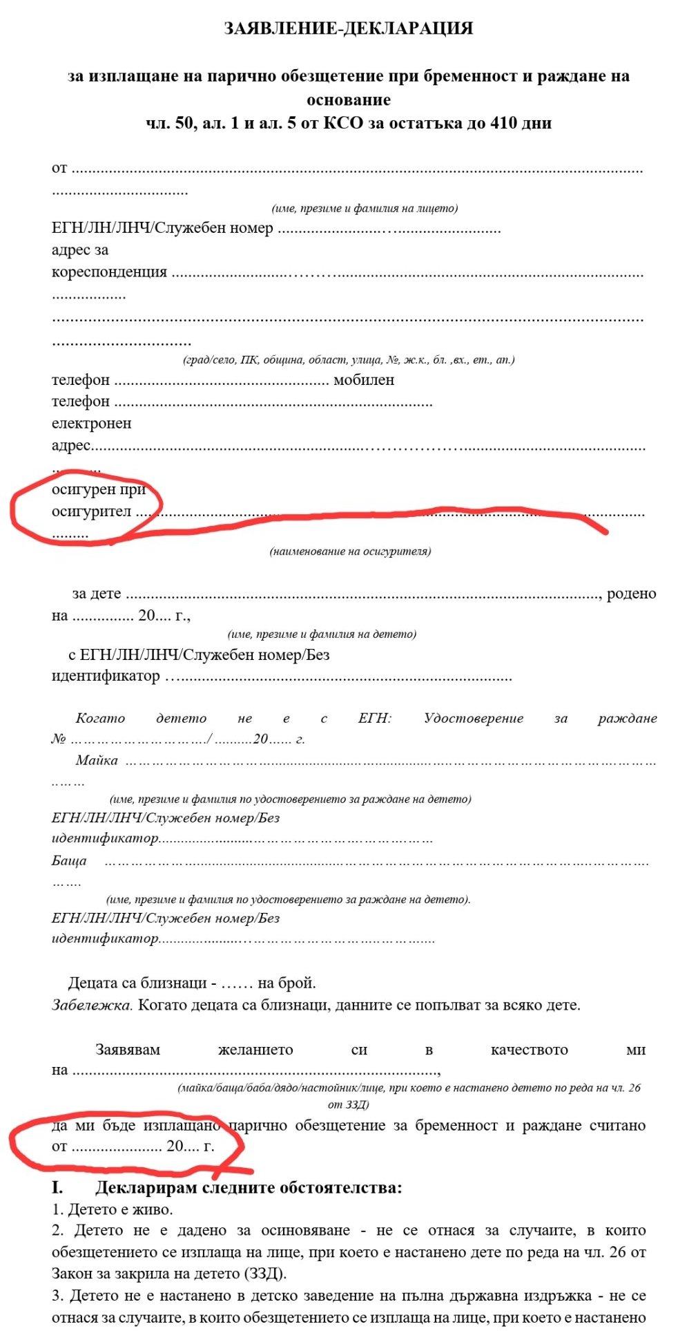 Здравейте! Трябва да попълня декларация за излизане в майчинство и имам 2 вероятно глупави въпроси свързани с нея.