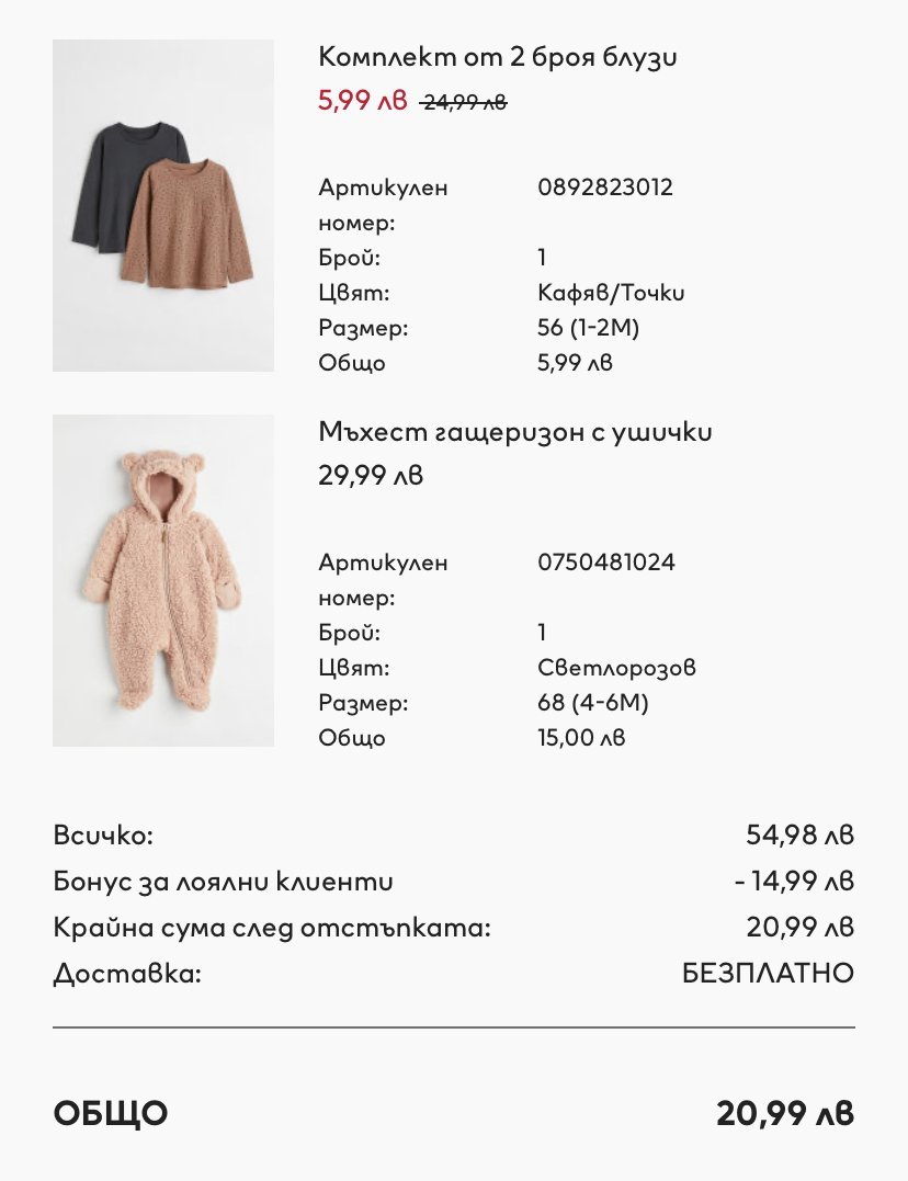 Как мога да проследя пратката си след закупуване от онлайн магазина на H&M?