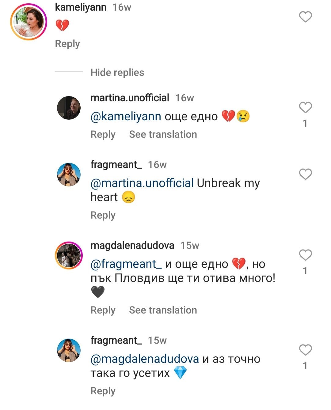Тия от шоуто толкова ли не разбраха, че гадаем по датите в инстаграм - по-добре изобщо да не им взимат телефоните, или пък да въведат някаква клауза да не постват поне месец след участието си. Много са ми смешни такива аматьорски изпълнения, иначе евала на нашите момичета за разбора!