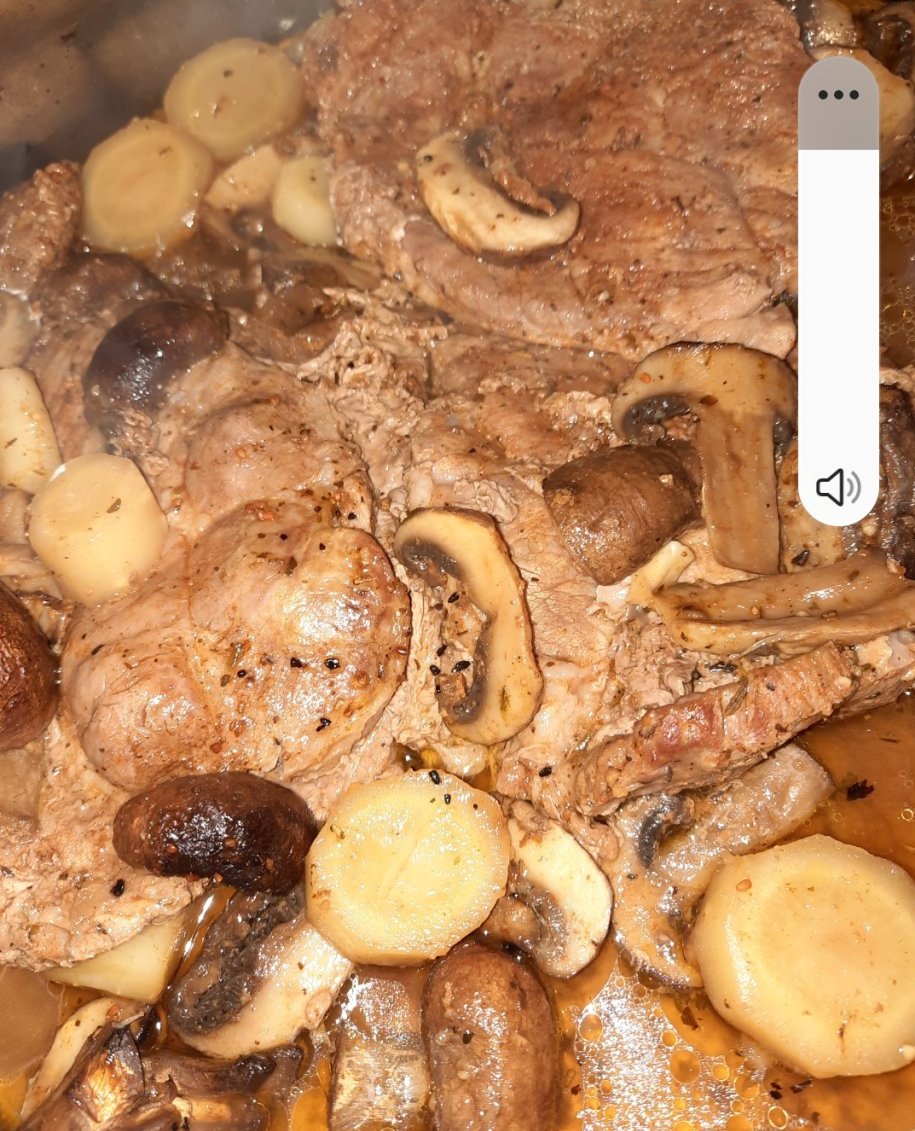 И свински пържолки от врат, всичко пекох в плик, после само го разрязах.