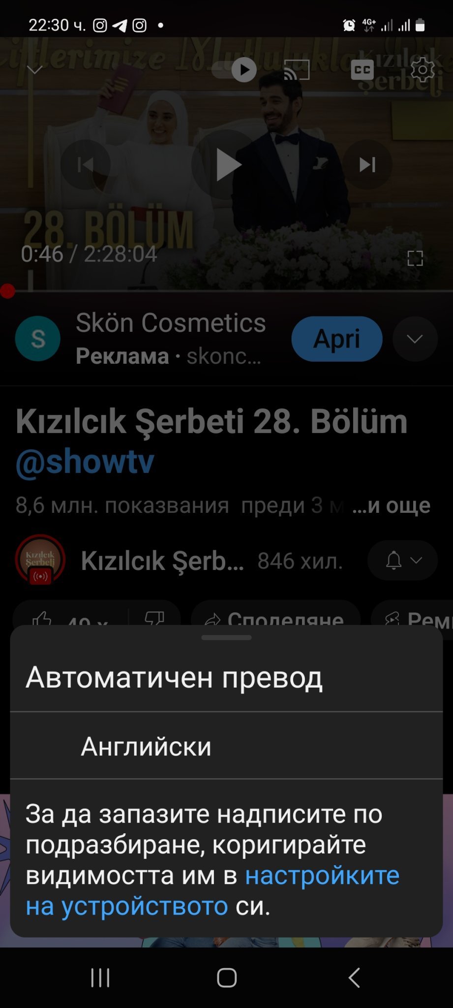 И аз съм регистрирана...опитах всичко-настройки в профила,в надписи...всичко.Сериите на официалната страница имат автоматичен превод само на английски, а някой други видеа излизат с български или италиански превод...Много съжалявам полудявам, че не мога да си го обясня...Ще лягам и аз.Благодаря ти най-сърдечно ❤️