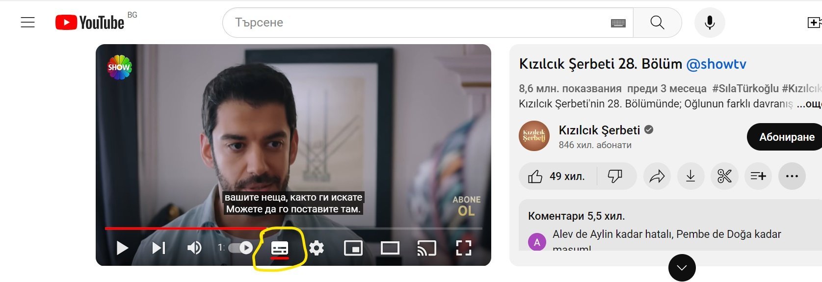 Избирате съответната серия. Отивате на "Настройки". Там ще видите, че пише "Субтитри".  И оттам си излиза превод от турски на български направо. Или избирате "Автоматичен превод" и оттам- избирате езика.