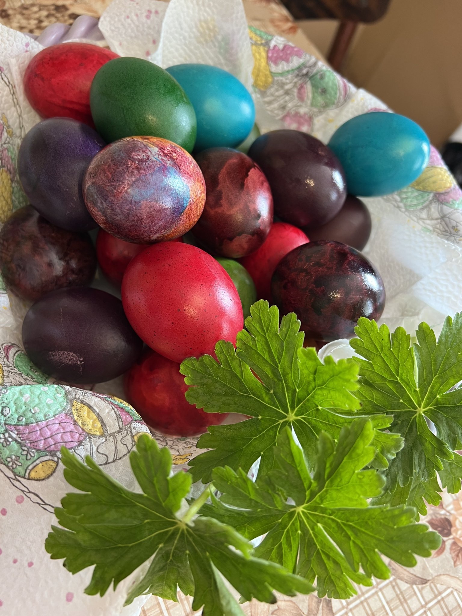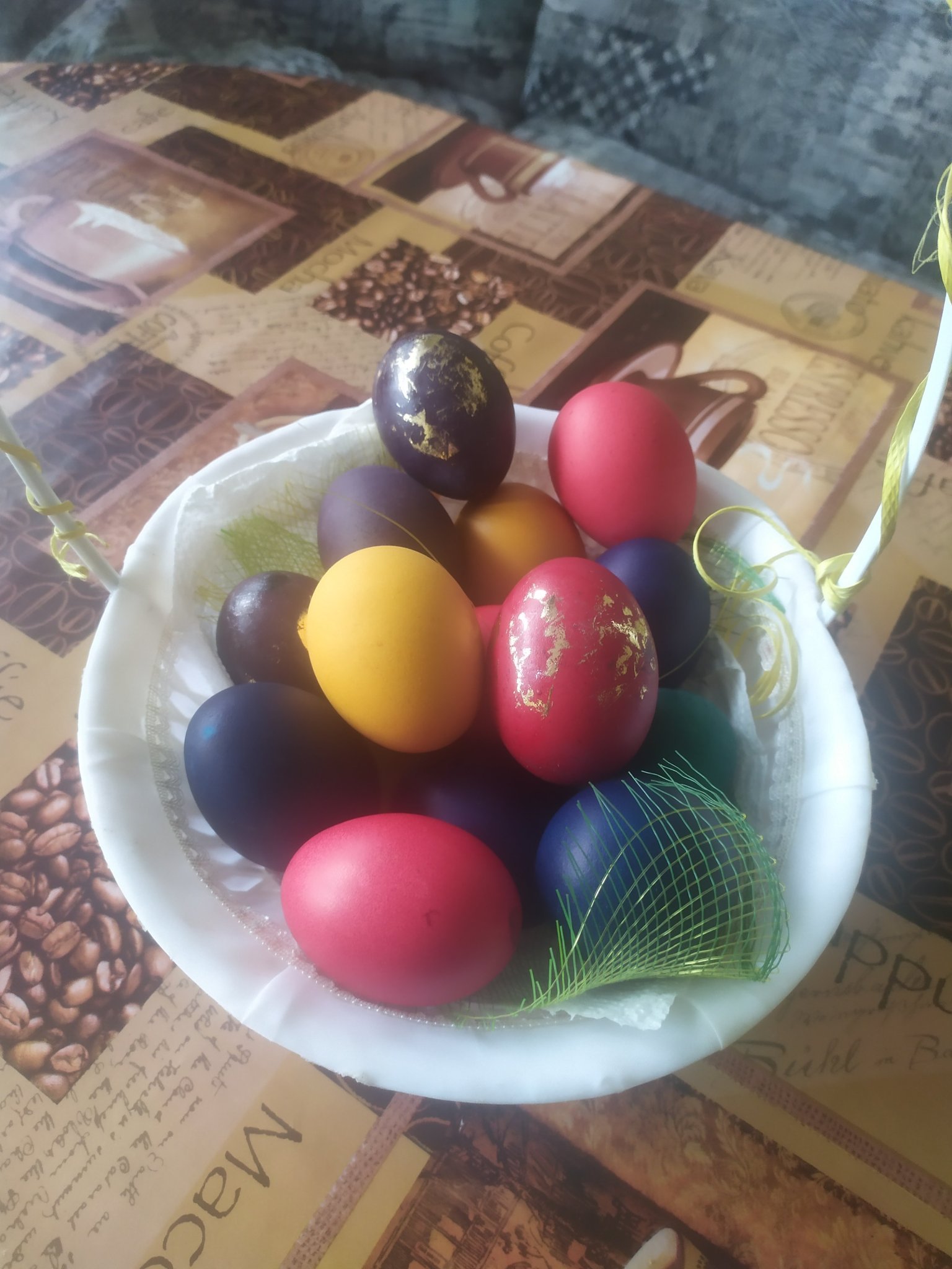 Лъки, аз пък точно на светли яйца и бои се кефя, ама половинката предпочита наситени. Комбинираме и вадим някои по-рано. Всъщност, нз защо говоря в мн.ч., като всяка година той боядисва яйцата, аз само ги полирам и слагам в кошничката. Rolling Eyes