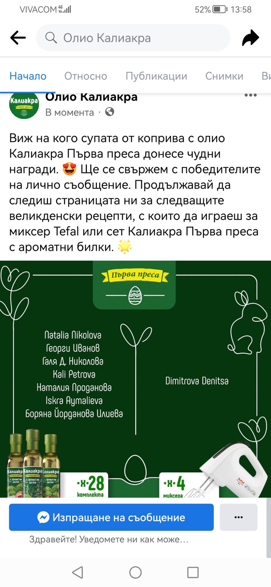 У дома ме чакат с копривата, че само аз спечелих, не е миксер, но на ММ му хареса наградата.