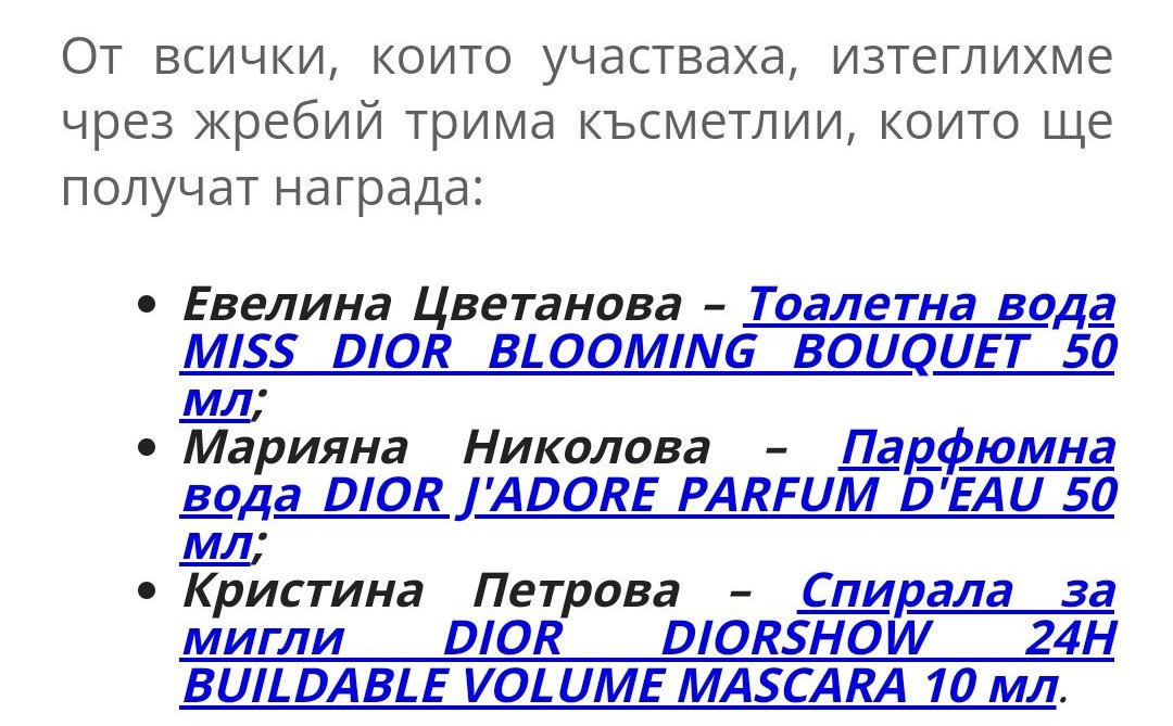 В крайна сметка az jenata са изтеглили печеливши от всички участвали. Заслужават похвала за това, че са се усетили за манипулацията на играта и в крайна сметка честно са изтеглени победители. Аз не участвах, защото бях се разочаровала от рекордьорите с 2 секунди...