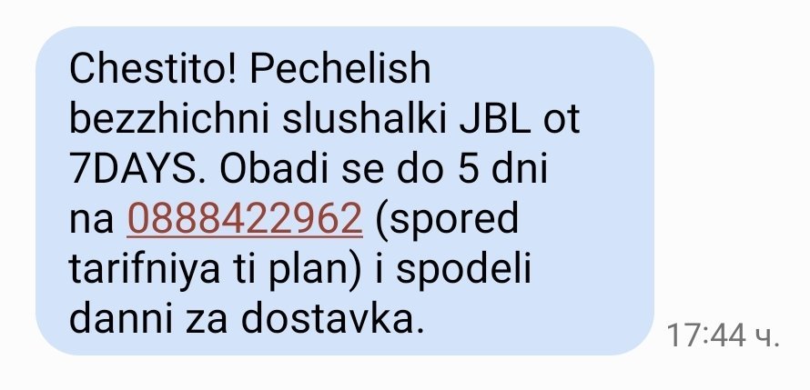 И аз съм със смс за слушалки!Това си ми беше и желаната награда!