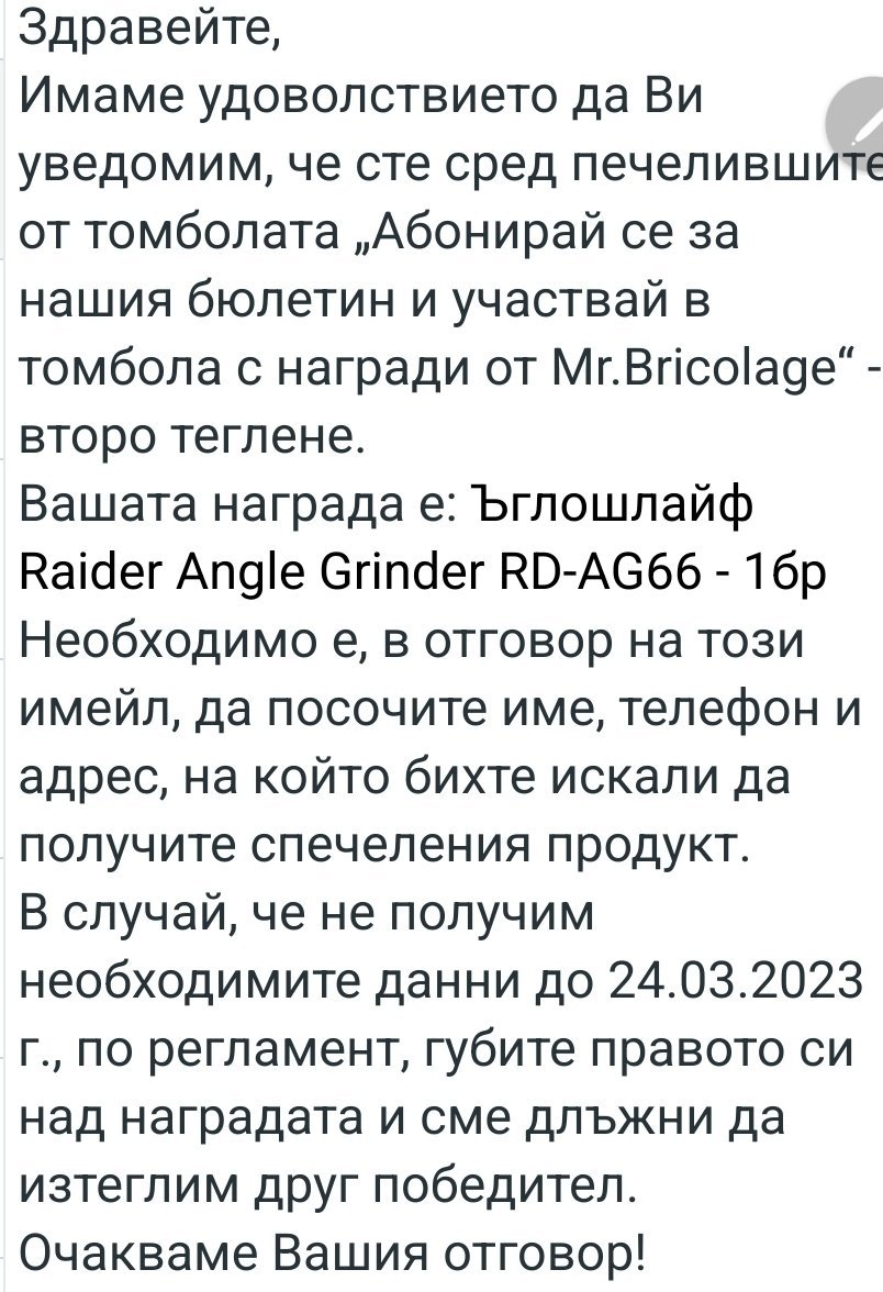 5. Най- неочаквано открих имейл в една от пощите си от Мосю Бриколаж🙂 Вижте какво печеля в приложените снимки🍀