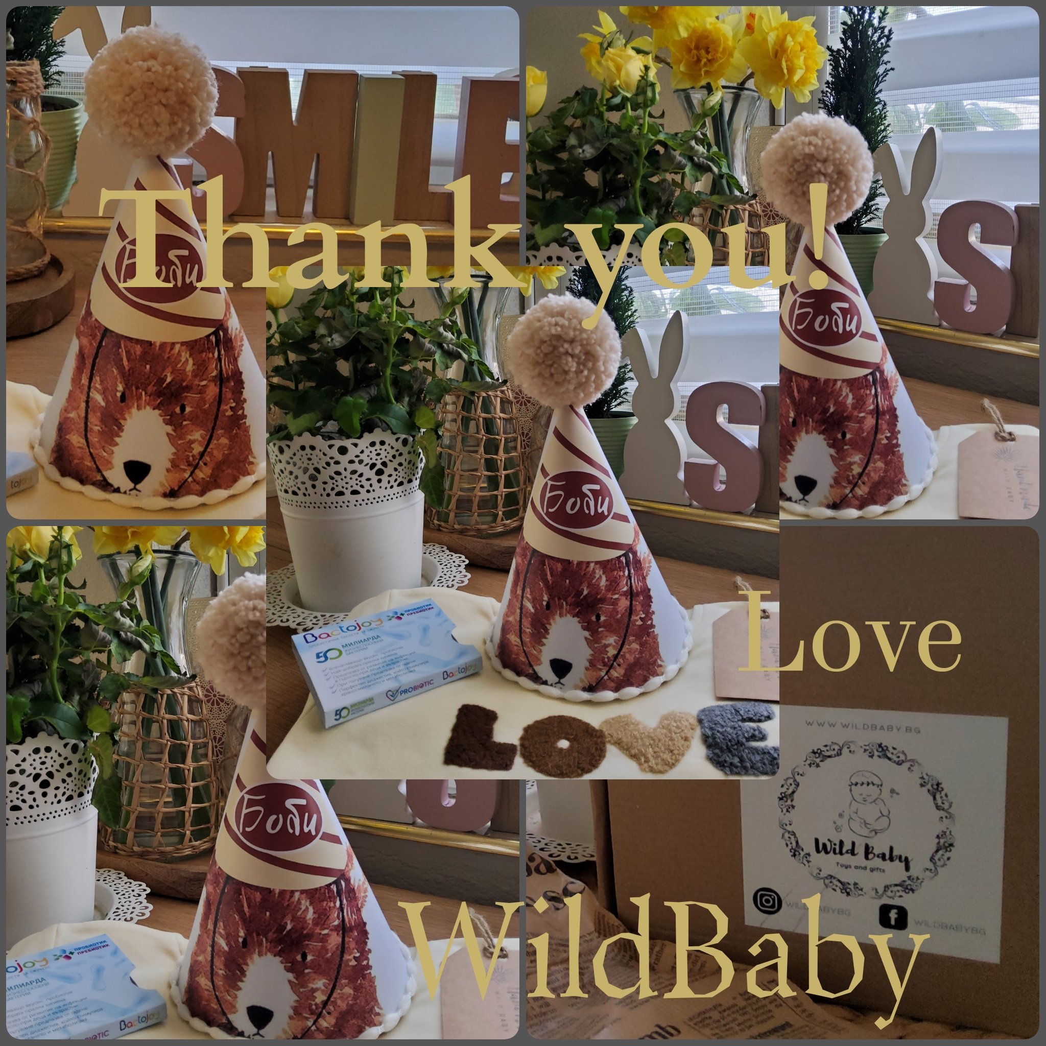 2.Пристигна наградата от WildBaby- сладка парти шапчица ( персонализирана) и хубав детски комплект ( блузка +панталон)+ пробиотик за деца. Не съм срещала по-учтиво отношение и по-прецизно изпълнение, буквално с внимание към всеки детайл.