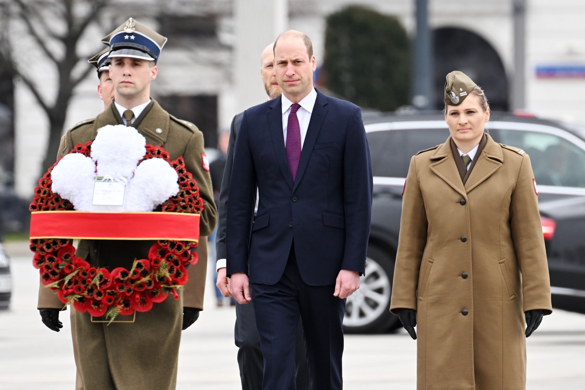 Уилям поднася венец на Гроба на незнайния войн във Варшава.